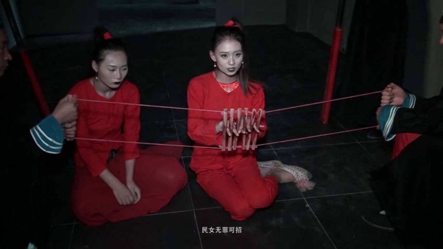 胜景山庄绳艺,紧缚定拍,古装母女带着枷锁被流放